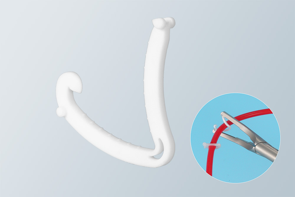 ● 弹性合页和V型锁孔锁槽设计,手感明确,快速有效结扎血管/组织